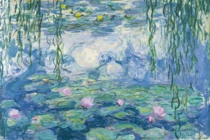 Claude Monet’s Waterlilies, 1916-19 captures a serene pond scene through impressionist brushstrokes. Gentle layers of blue and green depict floating lilies and overhanging branches, creating a soft, reflective quality. This print brings calm to living rooms or offices, softening spaces with its subtle light play. Customers appreciate how it draws the eye and eases daily…