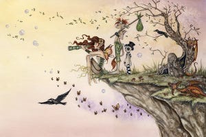 Where The Wind Takes You by Amy Brown captures fairies perched on a cliff, gazing into the distance amid floating butterflies and birds. This fantasy art print showcases her watercolor technique with soft gradients and intricate details that draw viewers into a magical realm. Customers appreciate how it adds a sense of wonder to living…