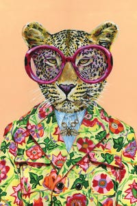 Gucci Leopard by Heather Perry features a stylish leopard in oversized glasses and a floral suit, blending fashion with pop culture whimsy. This anthropomorphic animal art print brings playful energy to walls, mixing bold patterns and quirky details that suit modern interiors. Customers appreciate how it adds fun personality to living spaces without overwhelming the…