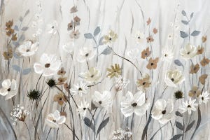 Nan paints with soft, layered strokes to create Misty Meadow Field, a print that captures a serene meadow dotted with wildflowers in neutral tones. The composition features delicate blooms and stems emerging from a misty backdrop, offering a gentle, calming presence. Customers appreciate how this floral wall art print blends seamlessly with modern or rustic…